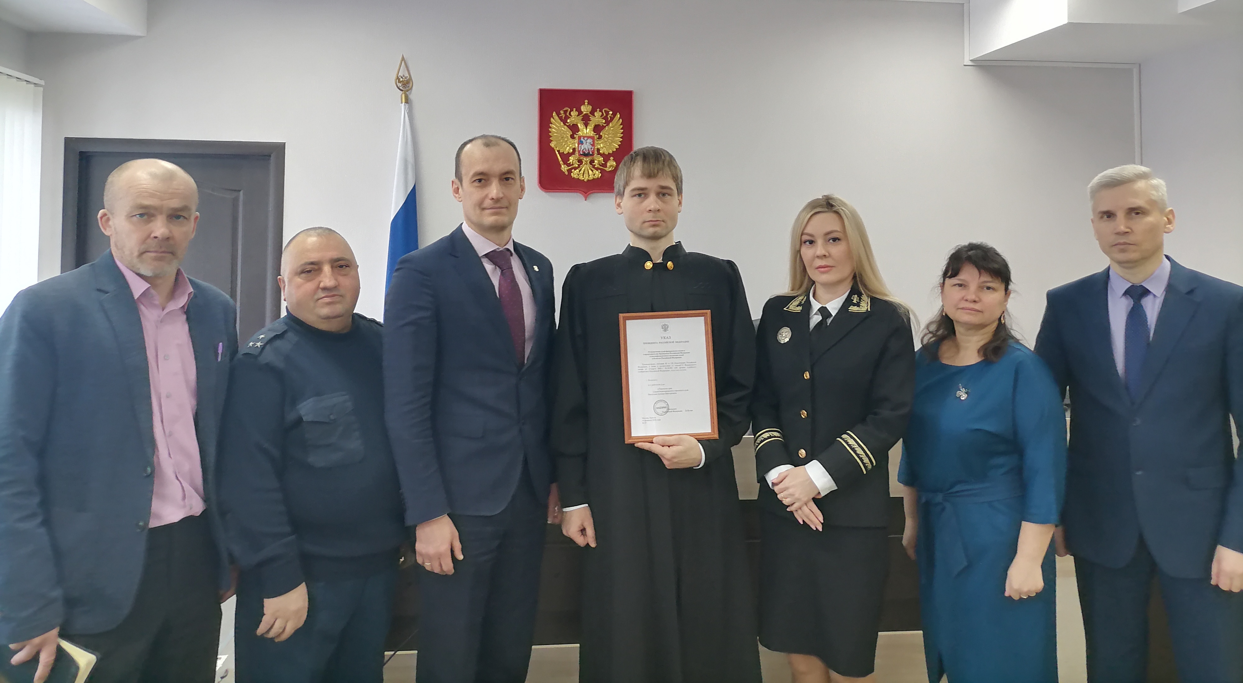 Указом Президента Российской Федерации от 16.02.2026 года № 93 на должность судьи Березниковского городского суда Пермского края назначен Евгений Васильев. Сегодня, 02 марта 2026 года, вновь назначенный судья в торжественной обстановке принес присягу, поклявшись честно и добросовестно исполнять свои обязанности, осуществлять правосудие, подчиняясь только закону, быть беспристрастным и справедливым. Председатель Березниковского городского суда Пермского края Ксения Баязитова в напутственном слове пожелала Евгению Викторовичу внутренних сил и профессиональных успехов в деятельности по отправлению правосудия. С назначением на ответственную должность Евгения Васильева поздравили представители органов местного самоуправления и правоохранительных органов города. |